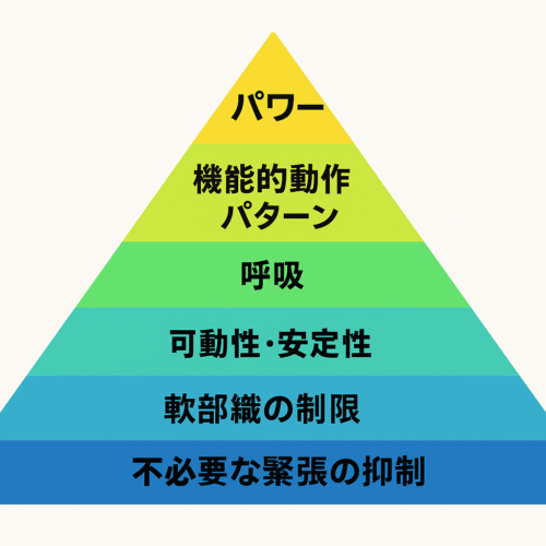 ブログ 2025.10.29ブログ パフォーマンスピラミッド ー 理想の身体を作り上げるための考え方 ー 「パフォーマンスアップピラミッド」という考え方をご存知でしょうか? よく目にするものは「痛みがない」ことを前提にしています。しかし実際には、氷山の一角... 2025.10.29ブログ